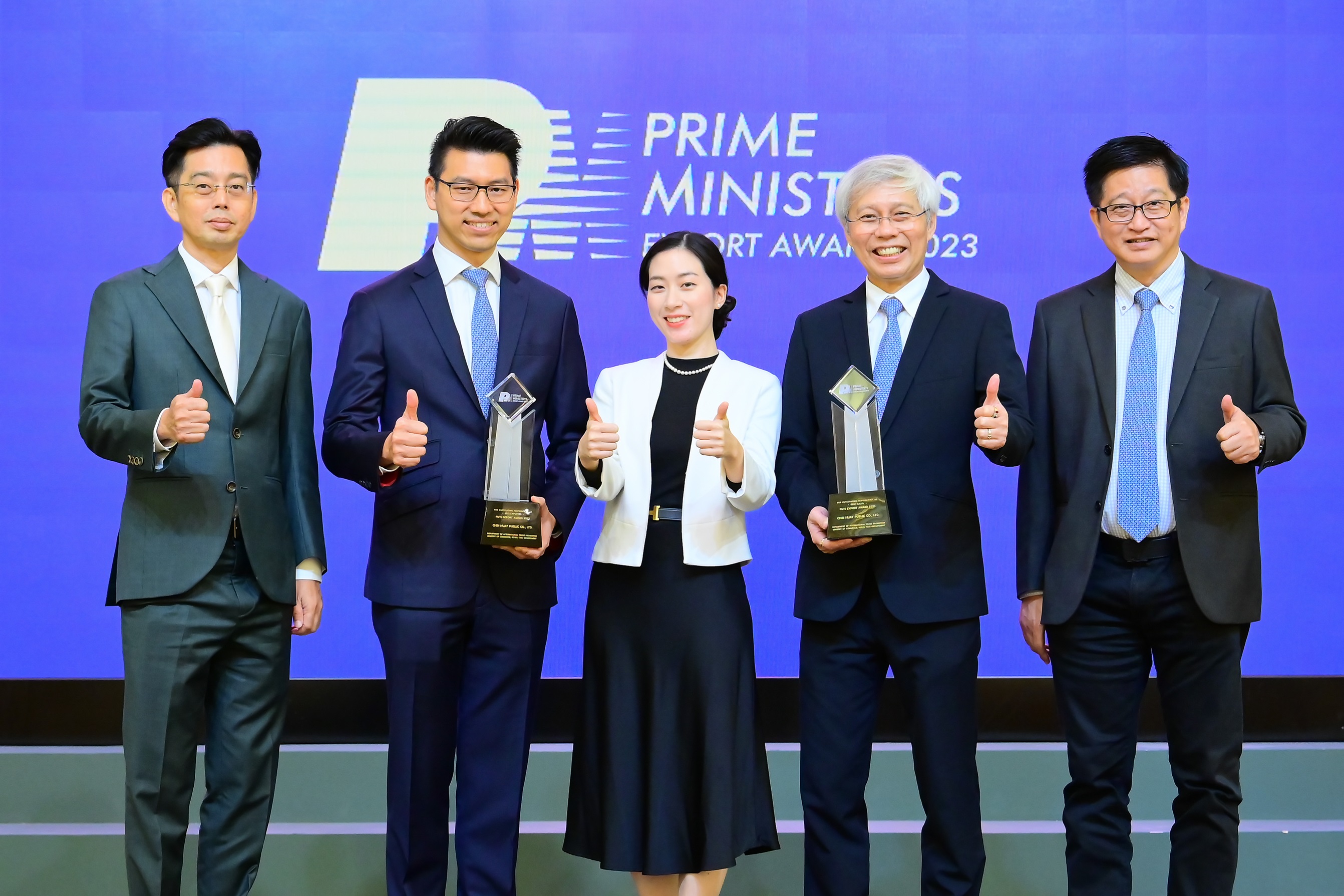 2 จากขวา) ประธานเจ้าหน้าที่บริหาร พร้อมด้วยนายประวิทย์ ศรีแสงนาม (ขวาสุด) ประธานเจ้าหน้าที่สายงานการลงทุน และนายปิยวงศ์ ศรีแสงนาม (ที่ 2 จากซ้าย) ประธานเจ้าหน้าที่สายงานปฏิบัติการ พร้อมด้วยคณะผู้บริหาร บริษัท เจริญอุตสาหกรรม จำกัด (มหาชน) (CH) ถ่ายภาพร่วมกันเนื่องในโอกาสที่บริษัทฯ เข้ารับรางวัลผู้ประกอบธุรกิจส่งออกดีเด่น ประจำปี 2566 (Prime Minister's Export Award 2023) ประเภทรางวัลผู้ประกอบธุรกิจส่งออกยอดเยี่ยม (Best Exporter) และรางวัลสินค้าฮาลาลยอดเยี่ยม (Best Halal) ซึ่งงานดังกล่าวจัดขึ้น ณ ตึกสันติไมตรี ทำเนียบรัฐบาล เมื่อเร็วๆ นี้