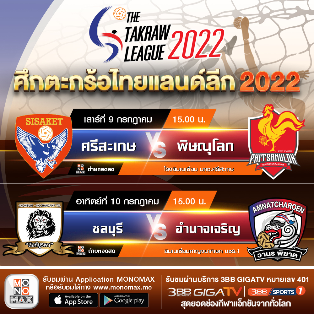 -วันเสาร์ที่ 9 ก.ค. ทีมศรีสะเกษ (เป็ดสายฟ้า) แข่งขันกับ ทีมพิษณุโลก (สิงห์ไก่ชน) เวลา 15.00 น. ณ โรงยิมเนเซียม มกช.ศรีสะเกษ