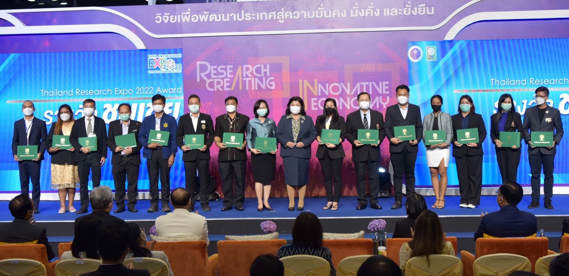 วันที่ 5 สิงหาคม 2565 สำนักงานการวิจัยแห่งชาติ (วช.) กระทรวงการอุดมศึกษา วิทยาศาสตร์ วิจัยและนวัตกรรม (อว.) มอบรางวัล Thailand Research Expo 2022 Award และมอบโล่แสดงความขอบคุณแก่หน่วยงานที่นำผลงานเข้าร่วมนำเสนอในงานมหกรรมงานวิจัยแห่งชาติ 2565 (Thailand Research Expo 2022) ซึ่งในพิธีปิดงานมหกรรมดังกล่าว มีผลงานวิจัยและนวัตกรรมที่ได้รับรางวัล และได้รับถ้วยรางวัลพระราชทานจากสมเด็จพระกนิษฐาธิราชเจ้า กรมสมเด็จพระเทพรัตนราชสุดาฯ สยามบรมราชกุมารี ถ้วยรางวัลจาก พลเอก ประยุทธ์ จันทร์โอชา นายกรัฐมนตรี ถ้วยรางวัลจาก ศาสตราจารย์พิเศษ ดร.เอนก เหล่าธรรมทัศน์ รัฐมนตรีว่าการกระทรวงการอุดมศึกษา วิทยาศาสตร์ วิจัยและนวัตกรรม ถ้วยรางวัลจากศาสตราจารย์ ดร. นายแพทย์สิริฤกษ์ ทรงศิวิไล ปลัดกระทรวงการอุดมศึกษา วิทยาศาสตร์ วิจัยและนวัตกรรม และถ้วยรางวัลจาก ดร.วิภารัตน์ ดีอ่อง ผู้อำนวยการสำนักงานการวิจัยแห่งชาติ พร้อมเงินรางวัล และเกียรติบัตร พิธีมอบรางวัลในครั้งนี้ ดร.วิภารัตน์