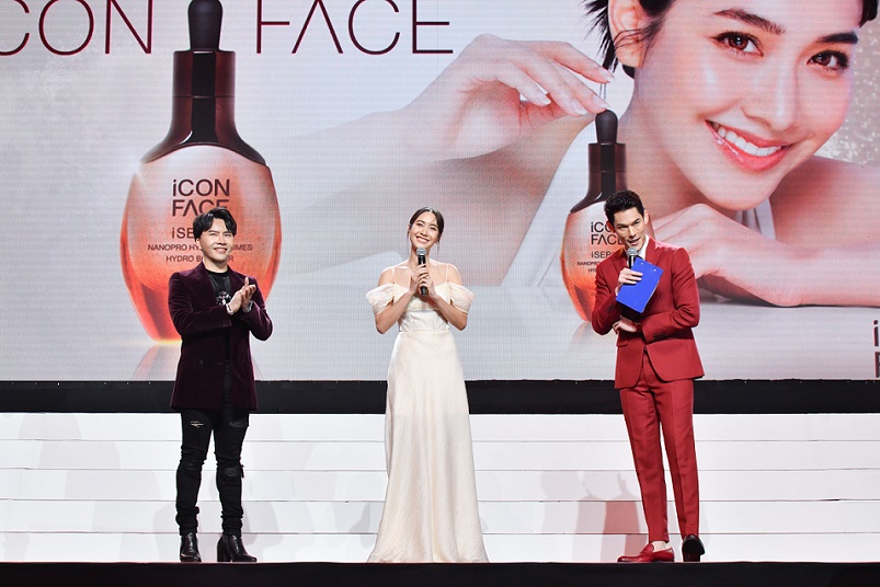 ไอคอน เฟส ไอเซรั่ม ( iCON FACE iSERUM) เซรั่มหน้ากระจก บนเวทีในงาน iCONNEXT เพื่อตอกย้ำความเป็นผู้นำทางด้านธุรกิจของดิไอคอนกรุ๊ป “ฝากเซรั่มตัวใหม่ด้วยนะคะ เป็นผลิตภัณฑ์ที่มิน ไปหาข้อมูลให้ตัวเองลอง รวมถึง product แล้วก็ลองใช้อยู่หลายเดือน เป็นเซรั่มที่มีสารสกัดจากทั่วโลกรวมมาให้หนึ่งเดียวในขวดนี้ วันนี้ก็ได้เปิดตัวมาแล้ว”.
